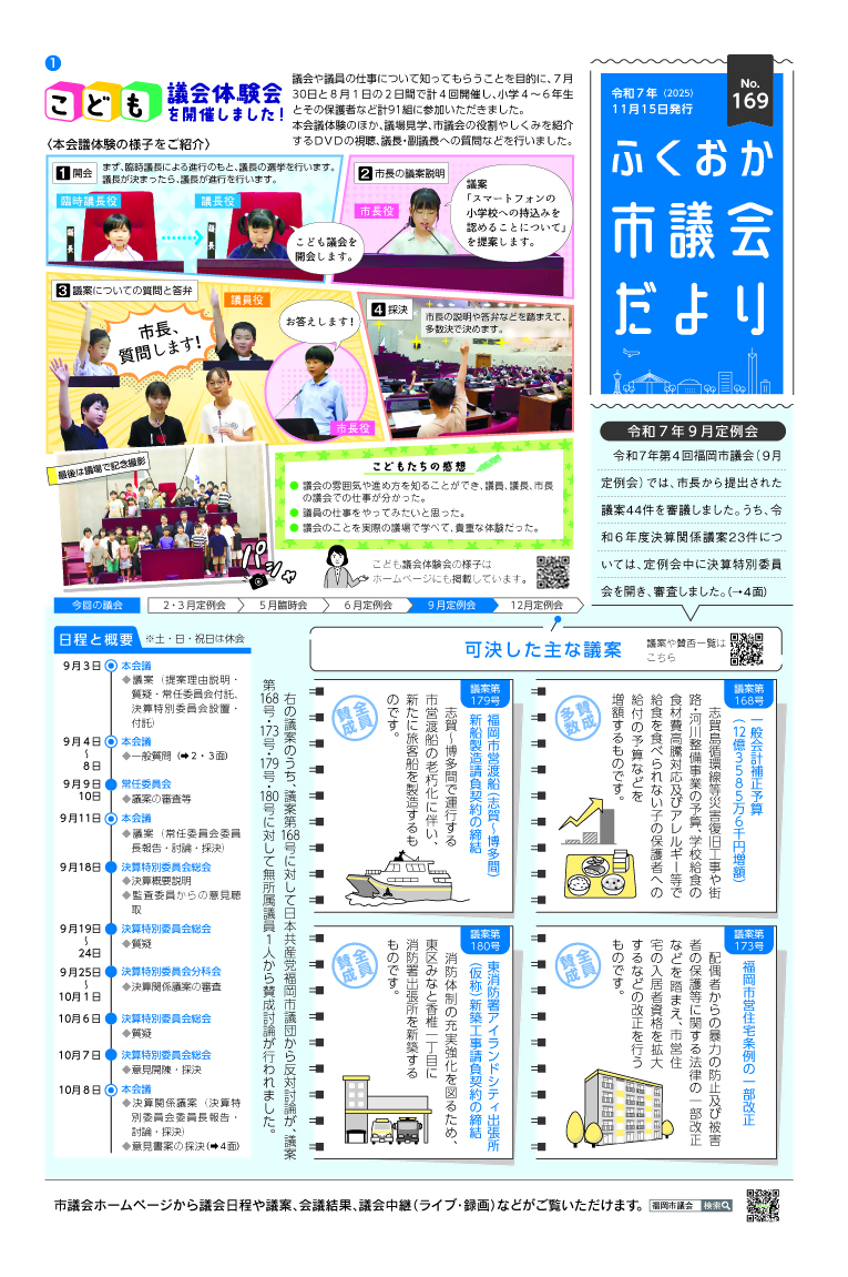 令和7年第4回福岡市議会(9月定例会)号 №169 令和7年11月発行