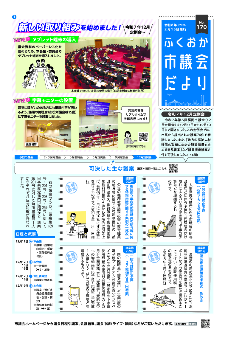 令和7年第5回福岡市議会(12月定例会)号 №170 令和8年2月発行